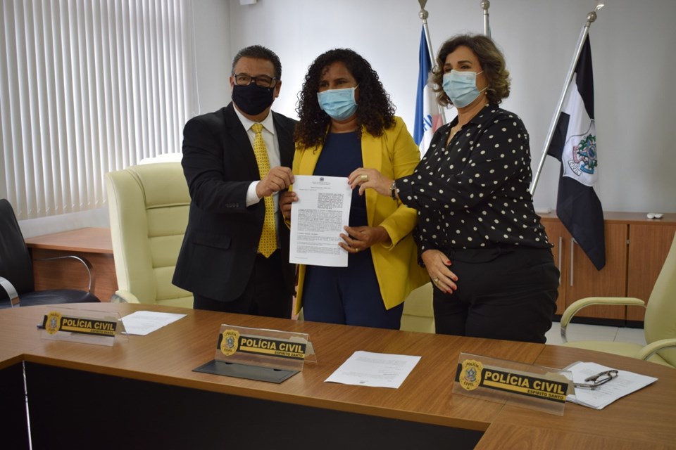 A vice-governadorado Estado, Jacqueline Moraes, participou, nessa quarta-feira (10) na sede da Policia Civil, em Vitória,da assinatura do Termo de Cooperação entre a Escola de Serviço Público do Espírito Santo (Eesesp) e a Polícia Civil do Estado do Espírito Santo (PCES), com o objetivo de descentralizar créditos (recursos financeiros) destinados à execução de cursos na modalidade “on-line” com transmissão em tempo real, para os candidatos habilitados para o Curso de Formação Profissional da Policia Civil.
