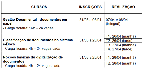 As inscrições para os cursos de demanda específica do Programa de Gestão Documental (Proged), da Secretaria de Gestão e Recursos Humanos (Seger), tiveram início, nesta quinta-feira (31). Com 24 vagas cada, as capacitações serão realizadas presencialmente nas instalações da Escola de Serviço Público do Espírito Santo (Esesp) a partir do mês de abril.